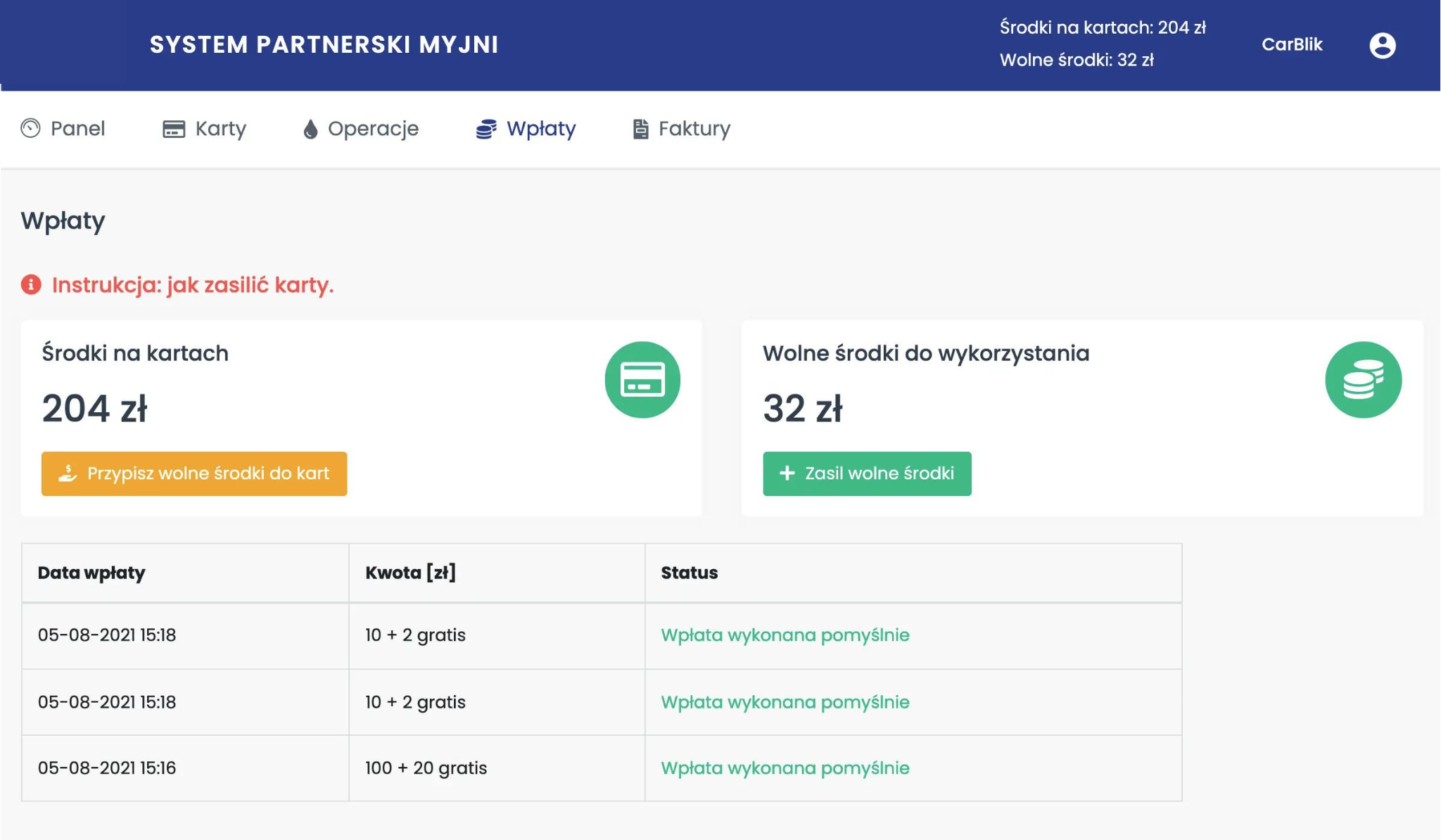 Fakturę można uzyskać przy zasileniu konta w systemie partnerskim.